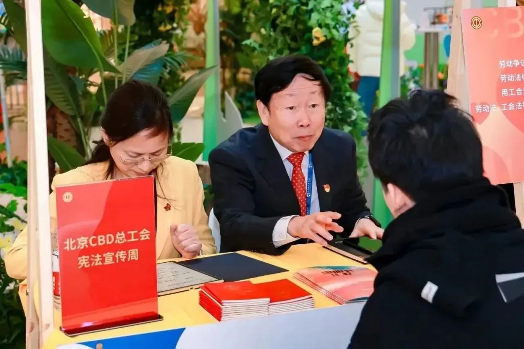 北京浩天律师事务所党员律师参加CBD总工会宪法宣传周职工沟通会活动,现场面向CBD职工进行普法宣传及法律咨询,拉近了律所和普通职工的距离,进一步加深了职工群众对宪法知识的理解。
