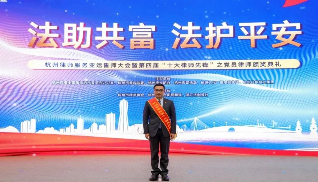 2022年4月16日,由杭州市委全面依法治市委员会办公室、市委政法委、市文明办、市司法局、杭州文化广播电视集团、杭州日报报业集团主办,市律师协会、杭州电视台影视频道和杭州日报共同承办的“法助共富、法护平安”杭州律师服务亚运誓师大会暨第四届“十大律师先锋”之党员律师颁奖典礼在杭州隆重举行。