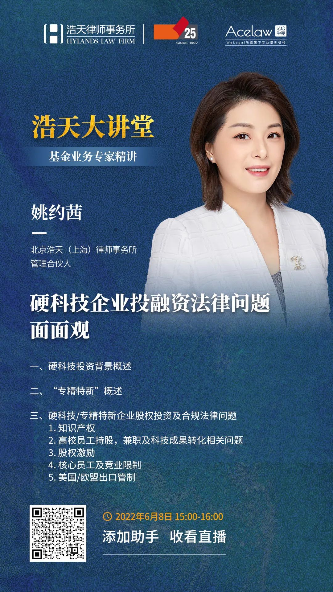 直播邀请 | 浩天大讲堂——硬科技企业投融资法律问题面面观