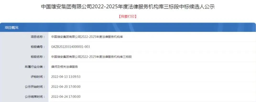 浩天成功中标中国雄安集团有限公司法律服务机构入库项目