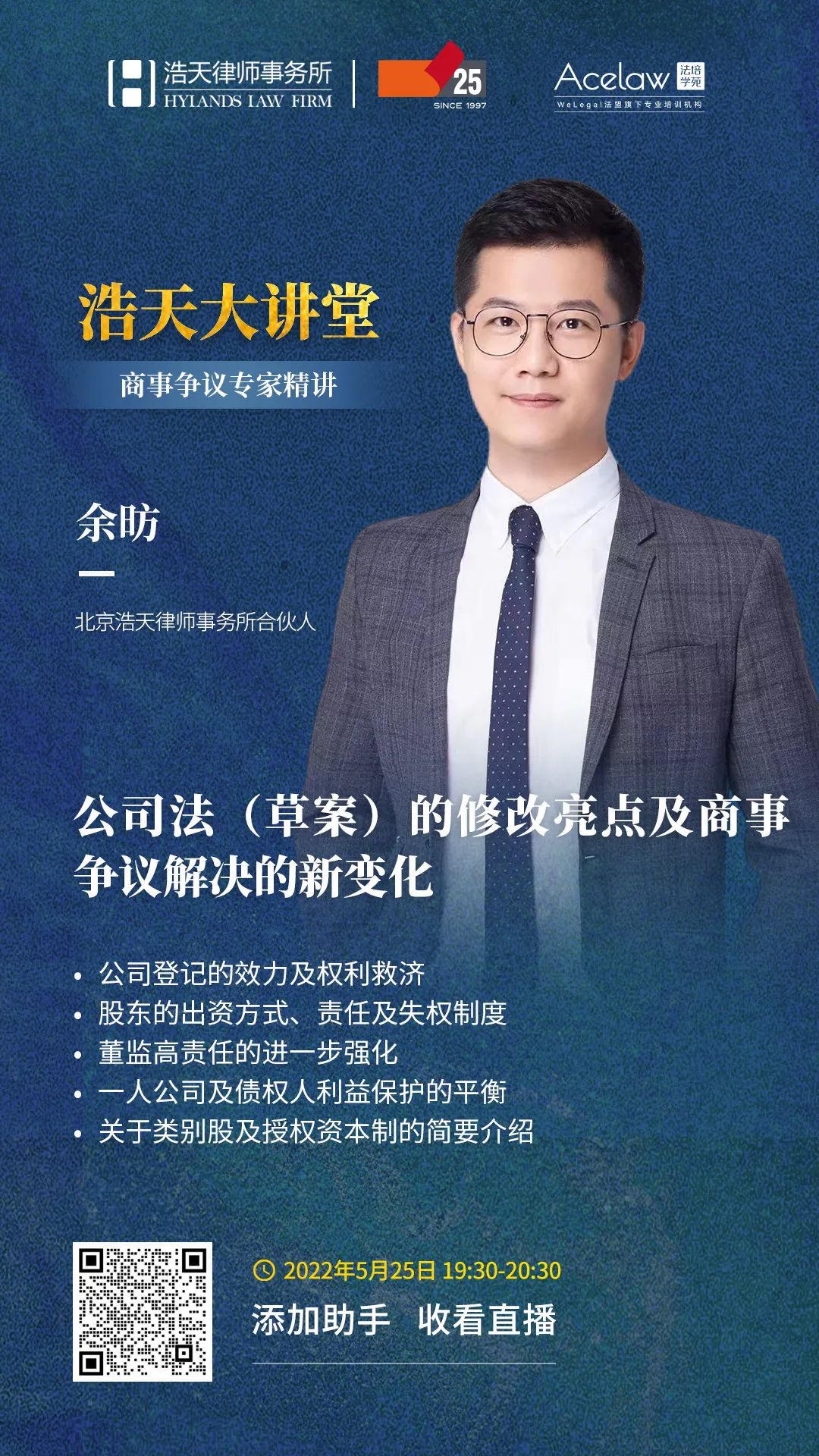 直播邀请 | 浩天大讲堂——公司法(草案)的修改亮点及商事争议解决的新变化