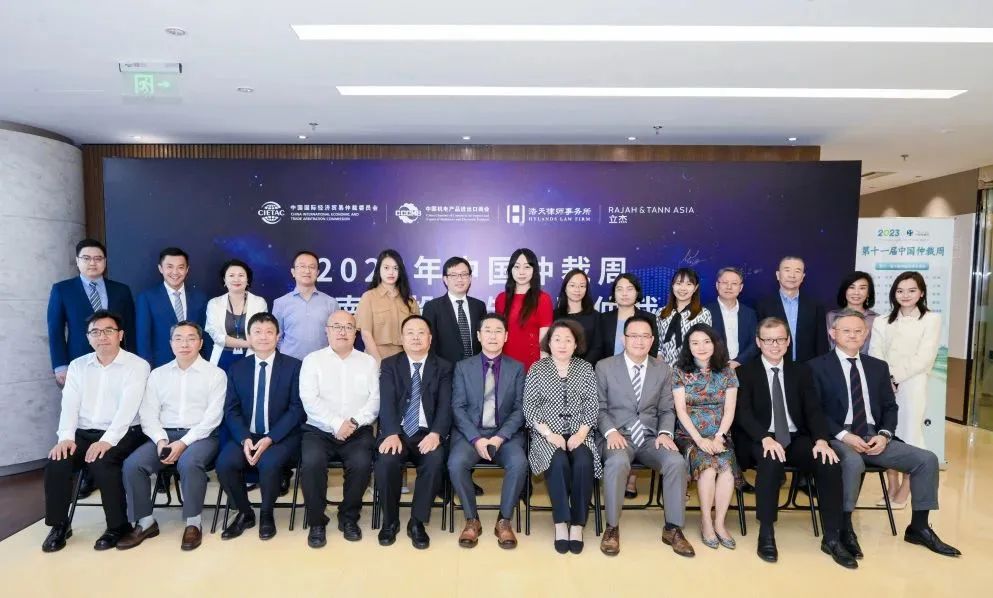 贸仲仲裁院副院长谷岩、机电进出口商会副会长石永红、北京大学法学院教授赵宏等多位专家学者,北京浩天律师事务所主任刘鸿,全国董事局主席蒋琪,管委会主任徐羽,高级合伙人朱志彤、沈倩,新加坡立杰律师事务所副管理合伙人潘健文等多位律师以及诸多知名企业管理者与法总等共同出席了此次会议。
