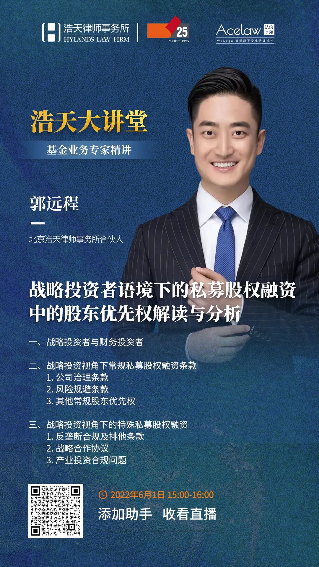 直播邀请 | 浩天大讲堂——战略投资者语境下的私募股权融资中的股东优先权解读与分析