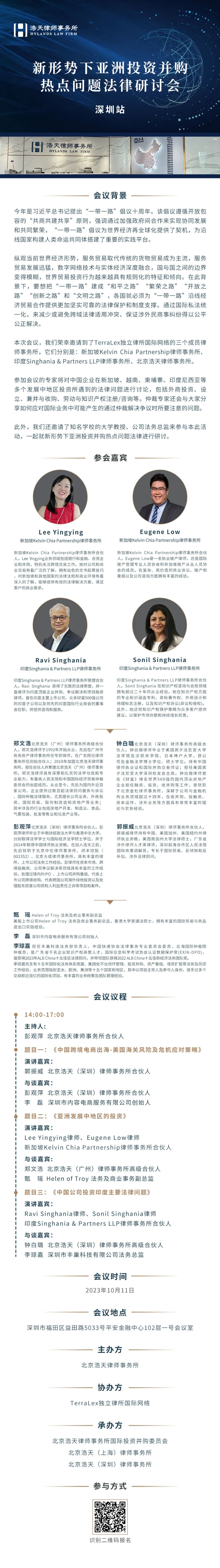 浩天论坛 | 新形势下亚洲投资并购热点问题法律研讨会(深圳站)