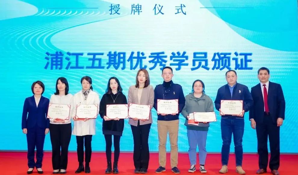 专题研讨结束后,会场举办了浦江五期实训营优秀学员颁证仪式,由浦江资本市场实训基地负责人楼韧敏女士为上海创贤网络科技有限公司、上海霖晏医疗科技有限公司、苏州鲸愈沪宁智能科技有限公司、上海风时健康管理咨询有限公司、上海荻硕贝肯医学检验所有限公司、巅峰体育产业股份有限公司、上海同科生物科技有限公司等实训营优秀学员单位代表颁发证书。