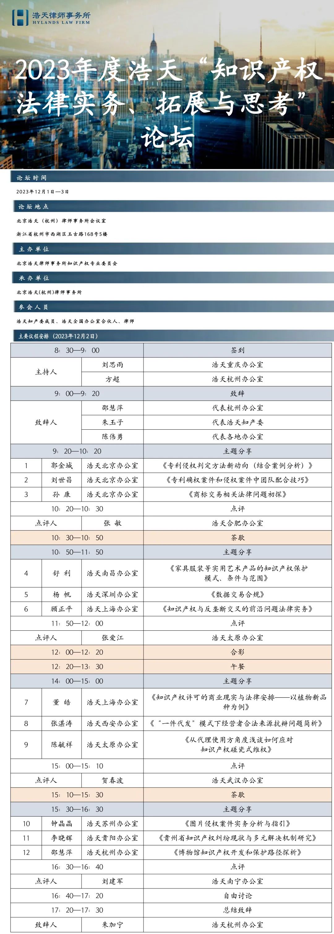 浩天论坛 | 2023年度浩天“知识产权法律实务、拓展与思考”论坛