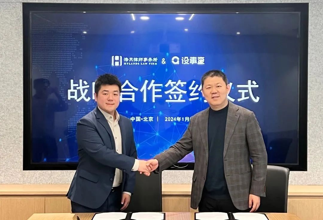 2024年1月8日,为推动法律服务领域的数字化创新赋能,改变传统律师服务业态,北京浩天律师事务所(以下简称"浩天")与北京没事查科技有限公司(以下简称"没事查科技")正式签署战略合作协议。浩天执行主任贾一鹏律师,没事查科技创始人丘腾腾先生、首席技术官徐殊睿先生,联想集团法务总监白晓康先生,BOSS直聘联合创始人王阿强先生等出席本次签约仪式。