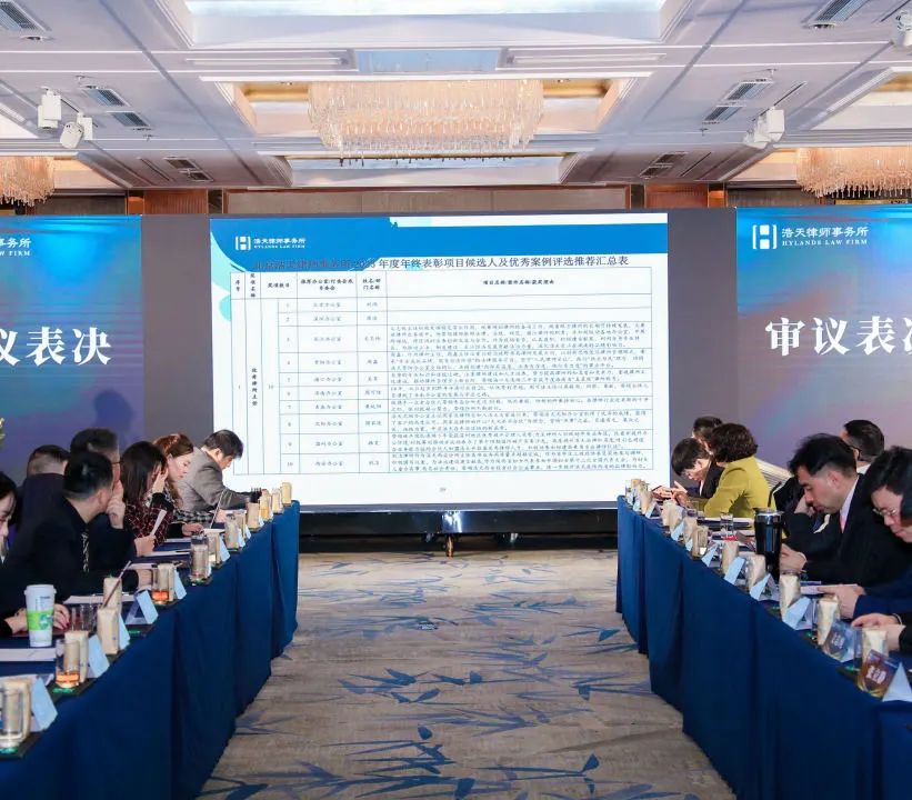 浩天全国董事局主席蒋琪律师主持了审议表决环节,大会审议表决通过了徐强律师作的《2023年度关于全国管理事务的年度决算报告》和王建林律师作的《2024年度关于全国管理事务的年度预算方案》,充分体现了浩天全国合伙人对2023年律所全国事务财务执行情况的充分肯定及对2024年全国事务发展规划的高度支持。母澈昌律师对2023年度及2024年度全国信息化费用情况作了专项说明。