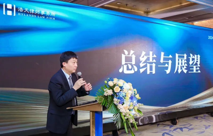浩天全国董事局主席蒋琪律师从六项成绩和五项不足的角度出发,对浩天2023年全国工作进行了全面系统总结,回顾了2023年取得的成绩,包括收案收费再创新高、品牌建设持续深化等。同时对2024年的工作提出了五点希望,蒋琪律师指出,2024年浩天要持续加强总分所一体化发展、提升律所风险防控力度,及关心帮助全国青年律师成长。