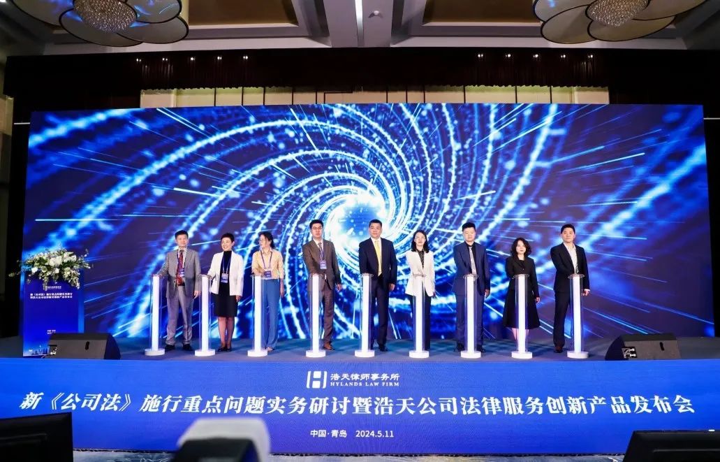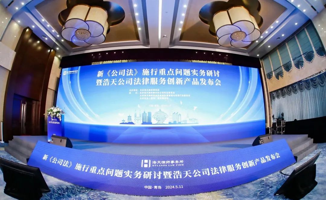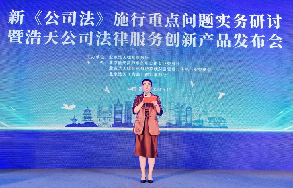 2024年5月11日,由北京浩天律师事务所主办,浩天全国公司业务专业委员会、浩天全国家族财富管理与传承行业委员会、北京浩天(青岛)律师事务所承办的“新《公司法》施行重点问题实务研讨暨浩天公司法律服务创新产品发布会”在青岛汉卓酒店成功举办。本次论坛旨在为企业提供新《公司法》实施后专业法律服务解决方案,全力提升浩天律师事务所在公司法领域的客户服务水平,为推动企业发展注入新的动力和活力!来自不同行业的近200位公司董事、高管莅临了此次盛会,浩天律师事务所及各地分所50余位合伙人、律师参会,共同研讨新《公司法》施行重要问题。
