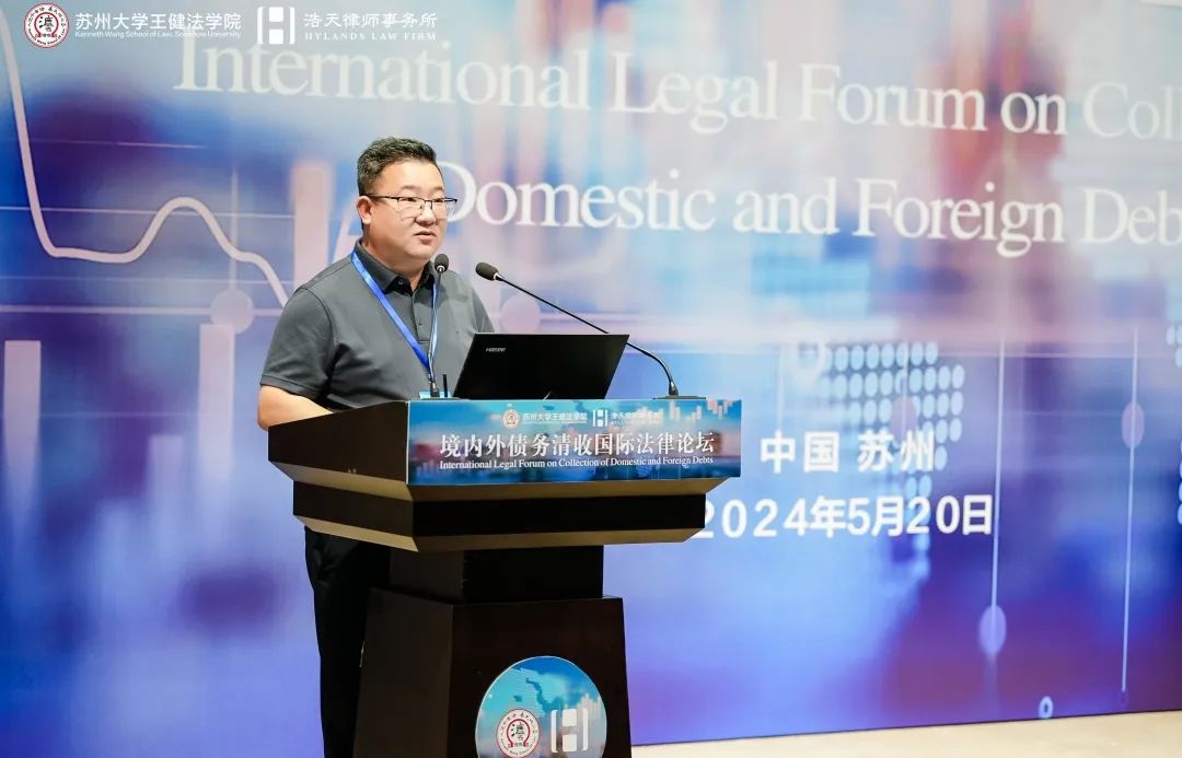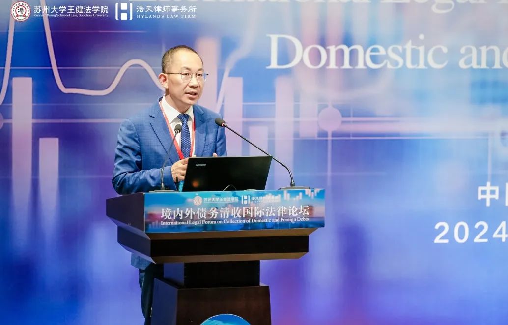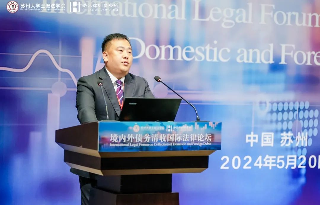 2024年5月20日,由苏州大学王健法学院主办,浩天全国争议解决专业委员会、国际投资并购专业委员会、北京浩天(苏州)律师事务所、北京浩天(温州)律师事务所、北京浩天(太原)律师事务所承办的“境内外债务清收国际法律论坛(苏州)”在苏州大学(独墅湖校区)南区金螳螂商学院成功举办。本次论坛旨在促进国内外律师与不同行业的专业人士之间深入交流与合作,从而在债务清收业务领域实现跨界融合与共同发展。