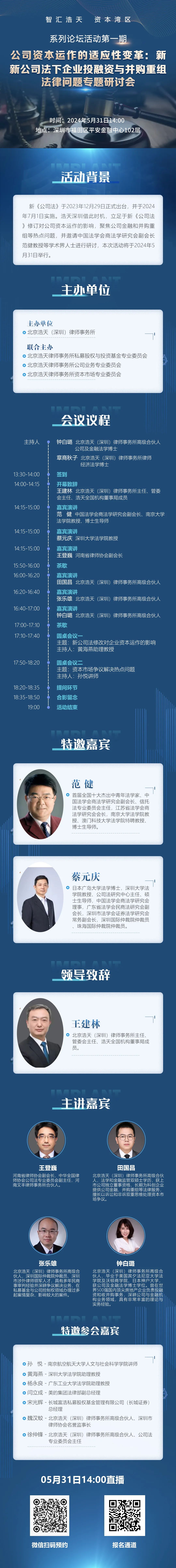 浩天论坛 | 《公司资本运作的适应性变革:新公司法下企业投融资与并购重组法律问题专题研讨会》(深圳)