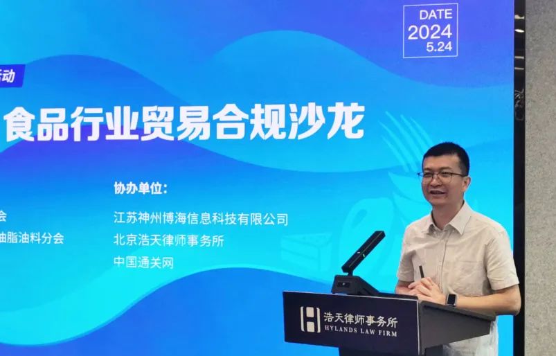 紧接着,北京浩天律师事务所赵晶律师以《关税法》的出台为背景,结合农产品、食品行业易发多发的海关违法典型案例,就进出口企业如何加强关务合规管,防范违规风险给出了建议。