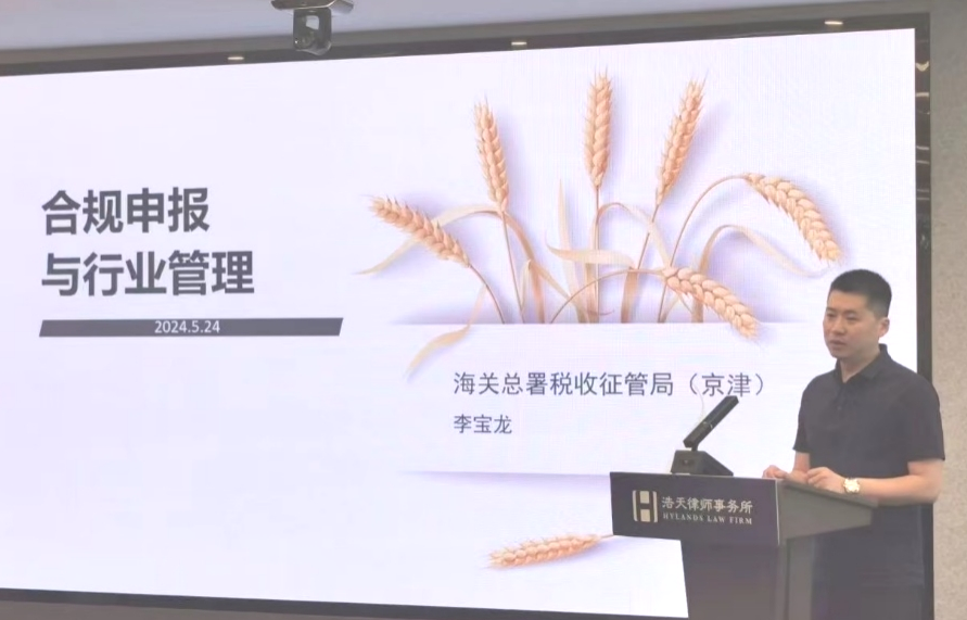 随后,海关总署税收征管局(京津)业务专家李宝龙围绕农产品合规申报、原产地、归类、价格等企业关心的问题进行分享。