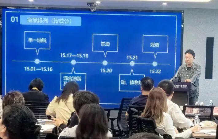 海关总署税收征管局(京津)业务专家吴森垚围绕油脂商品,对《税则》《品目注释》进行梳理,对其具体商品进行实例解析,并对油脂的合规申报等企业关注的重点问题作了分享。