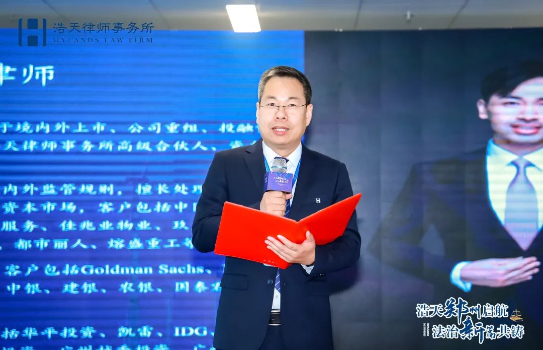 揭牌仪式后,浩天郑州办公室高级合伙人、本次法律讲坛主持人马华杰律师宣布浩天北京办公室高级合伙人张国光律师为各位嘉宾带来以“资本市场全透视”为主题的法律讲坛。