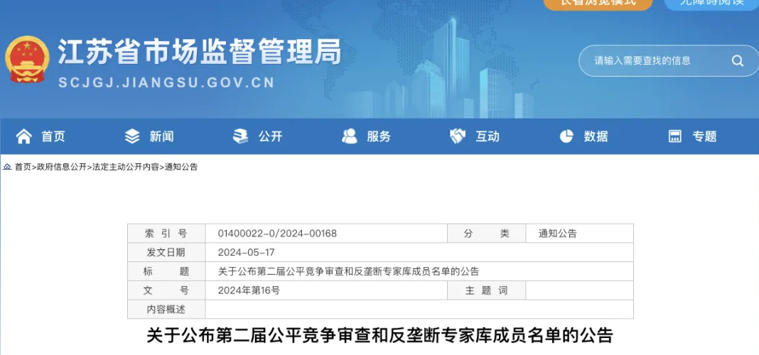 近日,江苏省市场监督管理局公布了第二届公平竞争审查和反垄断专家库成员名单。本次共有来自执法机构、法学院校、企事业单位、律师界的39名专家入选。