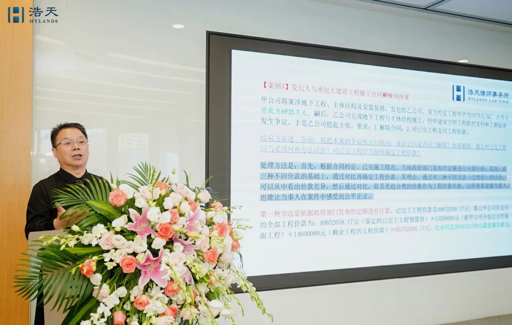 北京浩天(成都)律师事务所高级合伙人阴明伦律师以“建工行业现状及‘最高限价条款’与‘据实结算价款’的效力认定”为题,聚焦建筑行业现状与挑战,探讨施工合同法律实务,强调合规防控与合同起草重要性,提供案例分析及法律指引,助力企业应对市场变化。