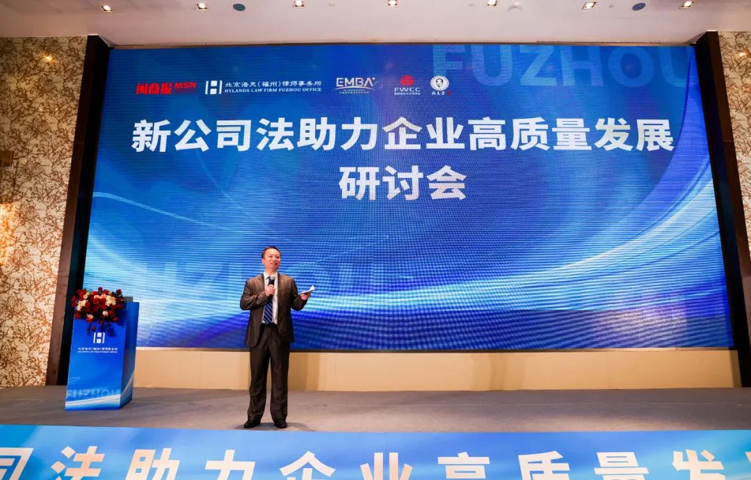 北京浩天(福州)律师事务所主任、高级合伙人马耀律师在致词中强调了新公司法对经济生活产生重大的影响,并表示本次新公司法的修订不仅是制度创新,更是激发了高质量生产力,这将产生重大经济价值。