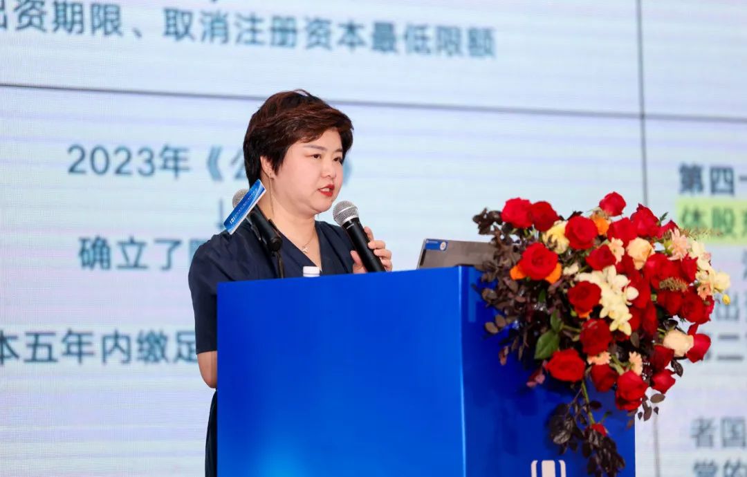 北京浩天律师事务所李丽律师藉其在证券监管机构、证券公司及律所从业的二十余年工作经验分享主题《新公司法、新国九条双维视角下上市公司合规事项的挑战和应对》:一、新公司法下上市公司合规重点关注事项;二、新国九条对上市的影响;三、律师在上市公司证券合规中的积极作用,包括协助上市公司积极应对监管部门的检查、组织梳理对上市公司等有利的证据资料、撰写申辩资料、参加听证会陈述相关事宜等。