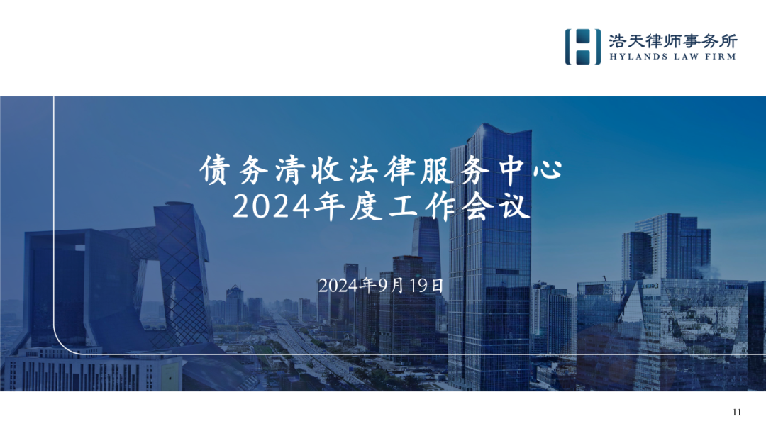 2024年9月19日,浩天债务清收法律服务中心2024年度工作会议在京召开。浩天律师事务所全国董事局主席蒋琪、执行主任贾一鹏、债务清收法律服务中心负责人付希业、境外债务清收牵头合伙人刘京及其他团队成员参加本次会议。