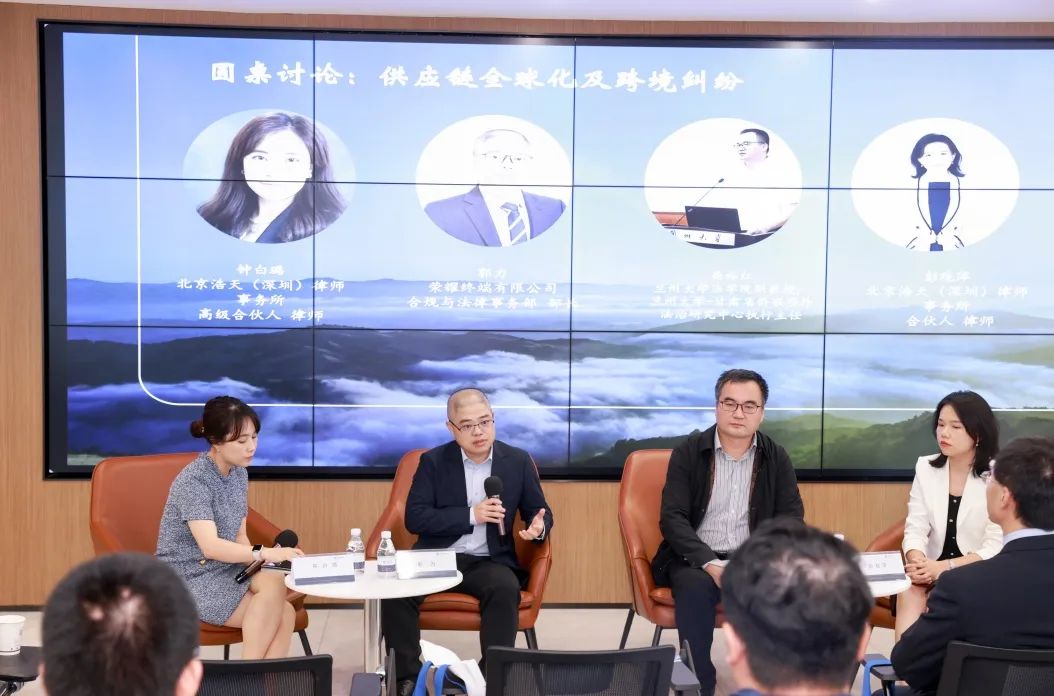 圆桌讨论环节由北京浩天(深圳)律师事务所高级合伙人钟白璐主持,邀请了兰州大学法学院副教授柴裕红、荣耀终端有限公司合规与法律事务部部长郭力以及北京浩天(深圳)律师事务所合伙人彭观萍参与讨论。他们围绕“供应链全球化及跨境纠纷”这一议题展开了深入对话,讨论内容涉及跨国企业合作中的常见法律风险、如何构建有效的争议预防体系以及如何利用仲裁解决跨境贸易中的复杂纠纷等多个方面。圆桌讨论环节后,参会人员就目前电子行业合规热门话题提出疑问,并与场上嘉宾展开交流。