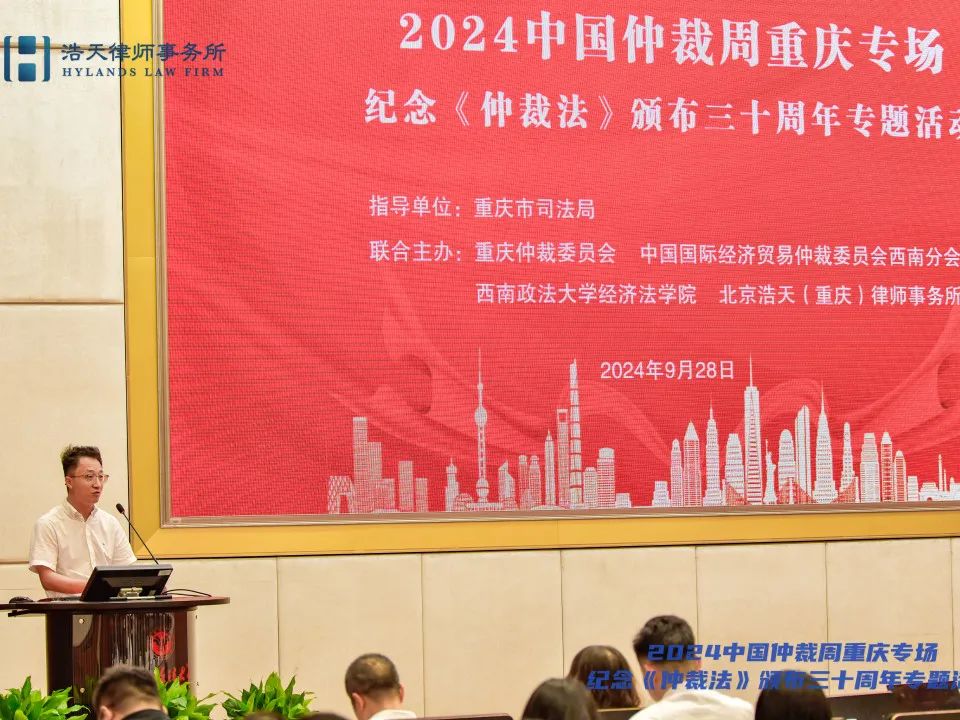 北京浩天(重庆)律师事务所主任杨洪胜在作总结发言时表示,此次活动的成功举办不仅为仲裁领域的理论研究和实践探索提供了宝贵的经验,也为中国仲裁的国际化发展指明了方向。他强调,随着仲裁法的不断完善和全球仲裁规则的接轨,中国仲裁将继续在国际仲裁领域发挥重要作用,同时北京浩天(重庆)律师事务所也将继续发挥国际商事仲裁中的优势,竭诚为海内外客户提供优质、专业、高效的法律服务。