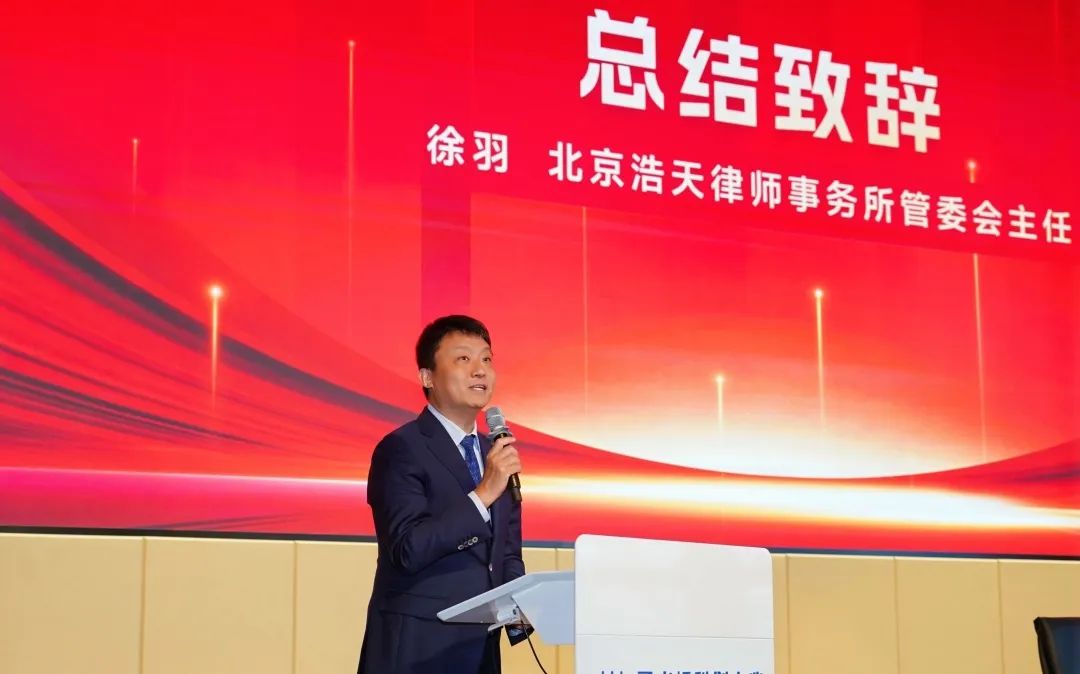 最后,北京浩天律师事务所管委会主任徐羽律师为本次论坛暨浩天宁波分所开业庆典作总结致辞。徐羽律师指出宁波办公室的落成是响应长三角一体化发展的创新实践,依托总所专业资源与宁波区位优势的机制协同、跨境法律服务与本土企业需求的路径协同,为华东地区企业提供全周期法律解决方案,祝福浩天宁波分所行稳致远。