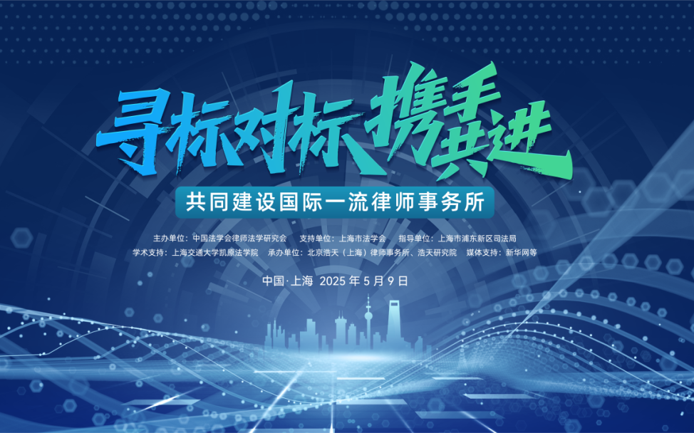 2025年5月9日下午,“寻标对标 携手共进,共同建设国际一流律师事务所”研讨会在浩天上海办公室外滩金融中心BFC成功举办。本次会议由中国法学会律师法学研究会主办,上海市法学会支持,上海市浦东新区司法局指导,上海交通大学凯原法学院提供学术支持,北京浩天(上海)律师事务所与浩天研究院联合承办,吸引了来自学术界、司法界及法律实务领域的近百位嘉宾齐聚一堂,共探中国律师事务所国际化发展的标准与路径。