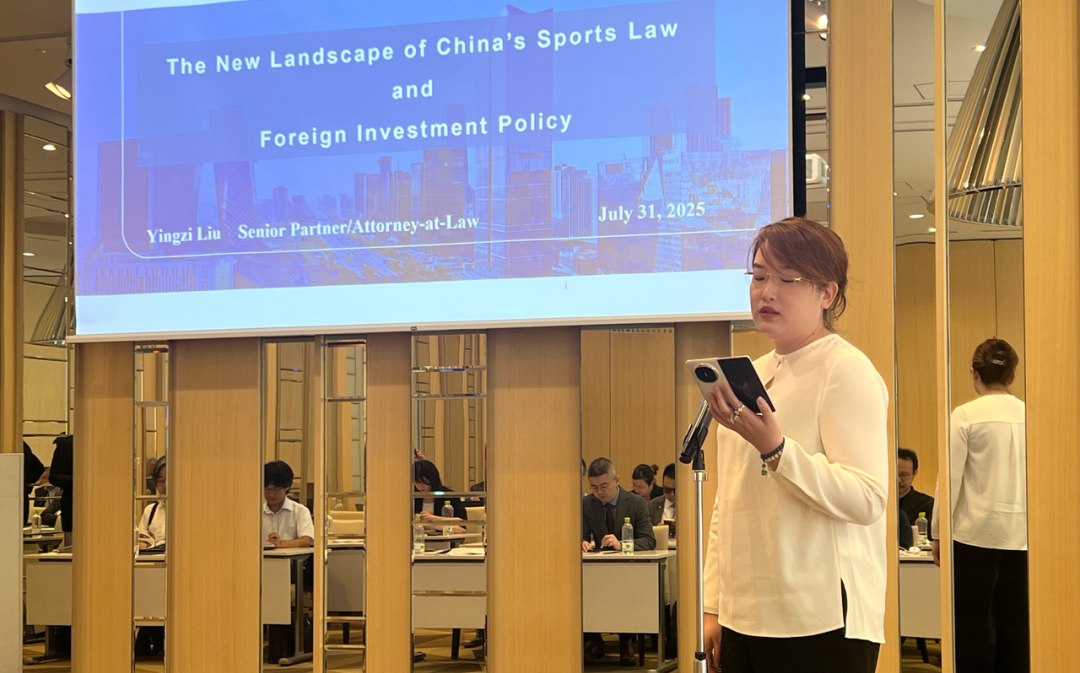 北京浩天律师事务所合伙人刘盈子律师则围绕《中国体育法新发展与体育产业外商投资政策》发表专题演讲,针对外资政策,梳理出五大鼓励领域:体育场馆运营、健身服务、竞技培训、户外运动设施及智能体育装备,同时提醒注意表演团体、新闻传媒等关联领域的持股限制。刘律师指出,新《体育法》构建了覆盖全民健身、职业联赛、赛事安全的全链条治理体系,中国体育产业正形成“法治化保障+消费升级”的双轮驱动格局,建议外资机构重点关注体育仲裁国际化(CCAS与CAS规则衔接)与自贸试验区政策红利的叠加效应。