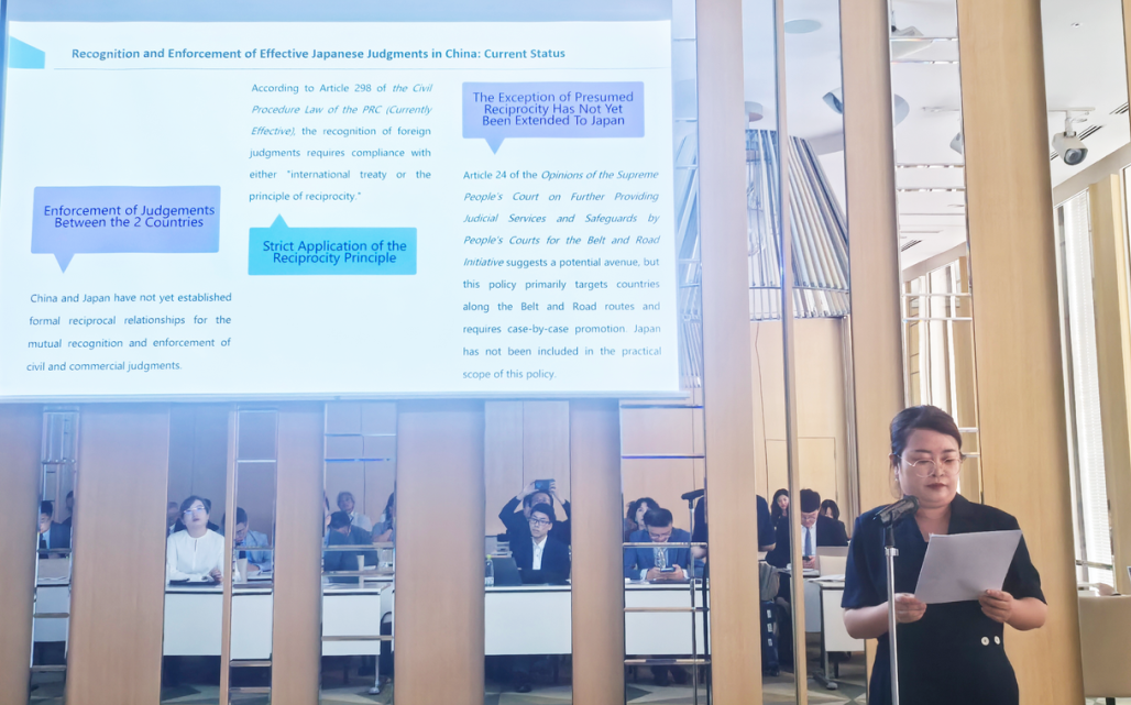 北京浩天(沈阳)律师事务所国际业务(日韩)顾问崔秀琳律师指出,根据《民事诉讼法》第298条规定,中国承认外国判决需满足“国际条约或互惠原则”,但目前中日两国尚未建立相互承认和执行民商事判决的正式互惠关系。针对未来合作,崔律师提出建设性建议:首先,企业可优先选择新加坡、香港等《纽约公约》缔约地的仲裁机构,其裁决更易跨境执行;其次,应密切关注中韩已突破的互惠先例,跟踪中日高层司法对话动态;最后,她特别提醒日企需注意中国法院执行程序中的财产查控时效性问题,并且结合实务经验进行了介绍,强调涉外律师应结合中日两国之间的文化差异更好地发挥沟通桥梁作用。