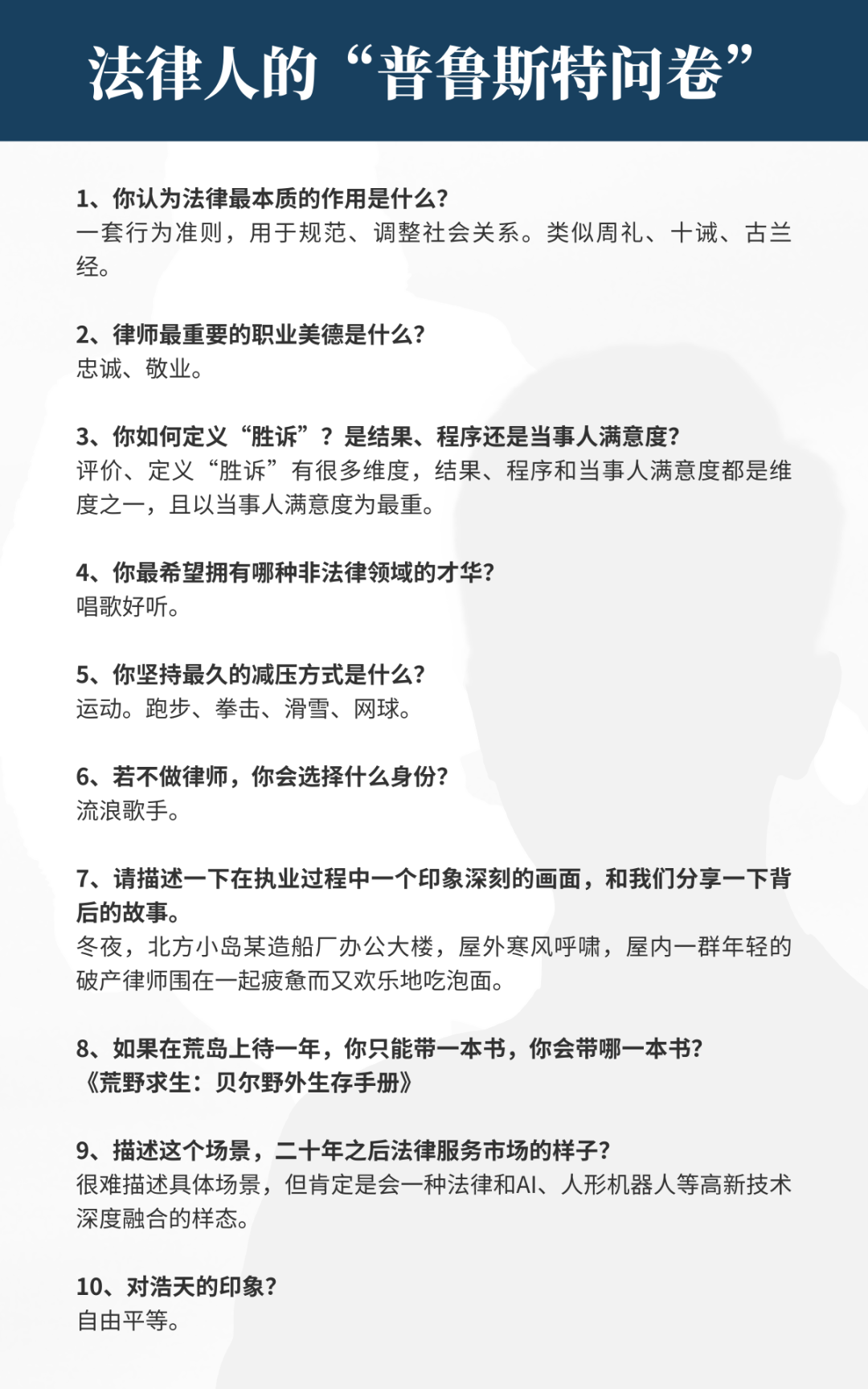 浩天森林是浩天律师事务所推出的系列专栏,最打动人的是故事,我们希望通过“年轮访谈”“我的使用说明书”“我的生活”“法律人的普鲁斯特问卷”的多元化立体式呈现新浩天人的成长故事,展示新浩天人“存浩然之志,立天地之间”的风貌与风采。