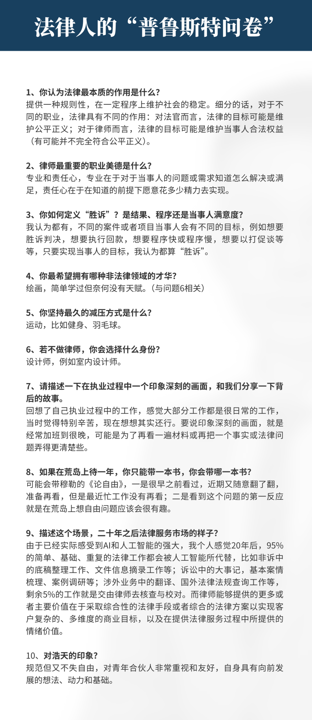 浩天森林是浩天律师事务所推出的系列专栏,最打动人的是故事,我们希望通过“年轮访谈”“我的使用说明书”“我的生活”“法律人的普鲁斯特问卷”的多元化立体式呈现新浩天人的成长故事,展示新浩天人“存浩然之志,立天地之间”的风貌与风采。