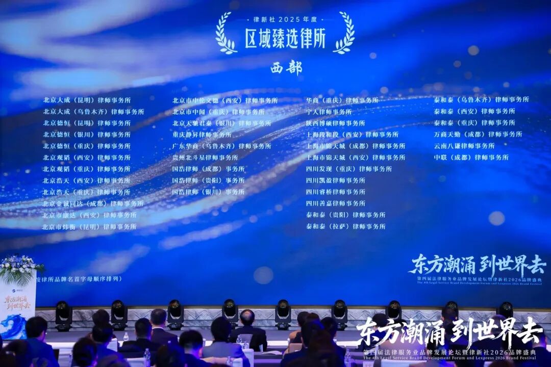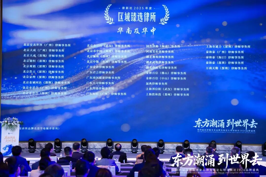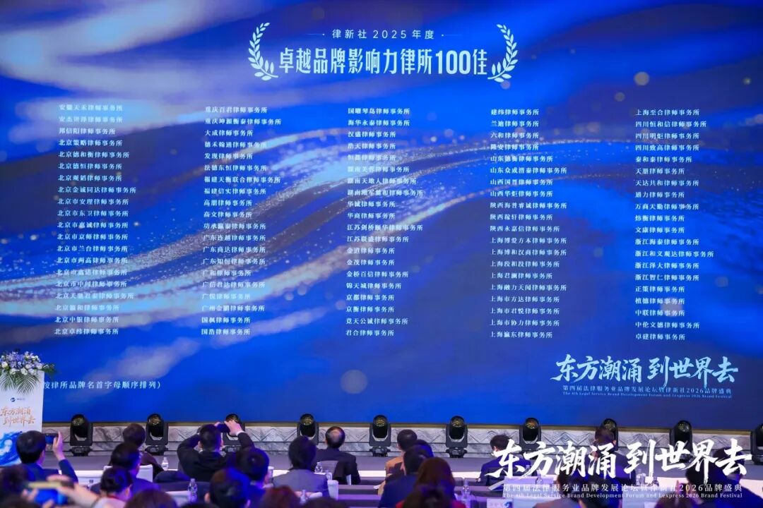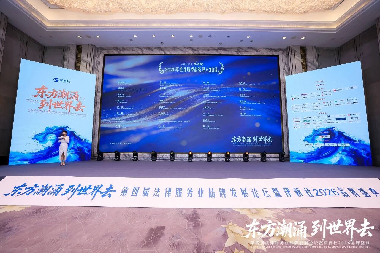 2026年3月13日至14日,“东方潮涌 到世界去”第四届法律服务业品牌发展论坛暨律新社2026品牌盛典在上海盛大举行。盛典现场律新社《律所卓越品牌影响力指南(2025)》十项律所大奖正式揭晓,“律新社2025年度风云榜:律界年度人物大奖”系列也同步亮相。