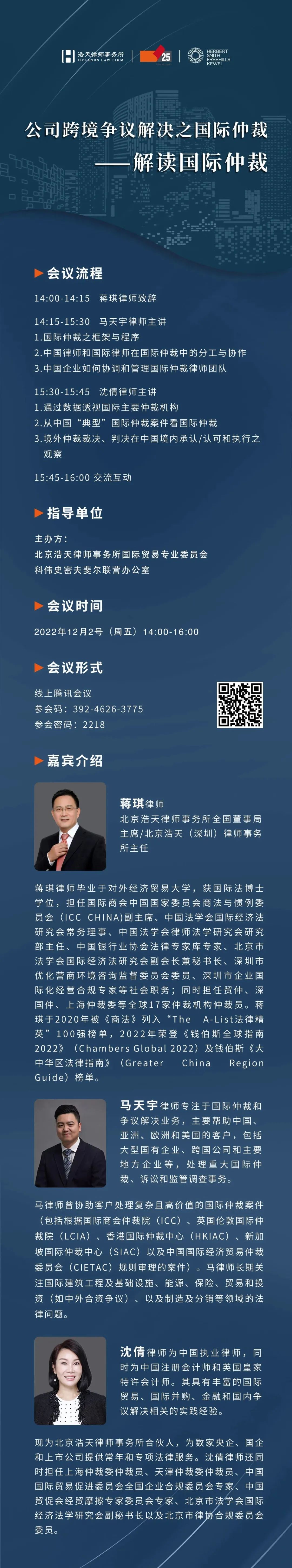 浩天论坛 | “公司跨境争议解决之国际仲裁——解读国际仲裁”主题研讨会