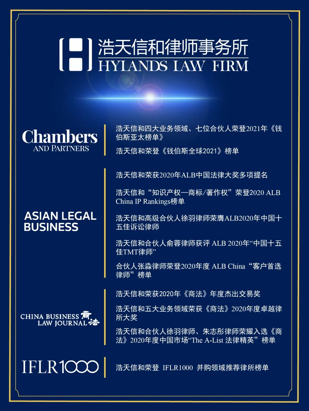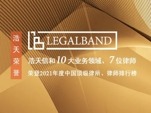 浩天荣誉 | 浩天信和10大业务领域、7位律师荣登LEGALBAND 2021年度中国顶级律所、律师排行榜
