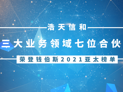 浩天荣誉 |钱伯斯2021亚太榜单公布,浩天信和斩获佳绩