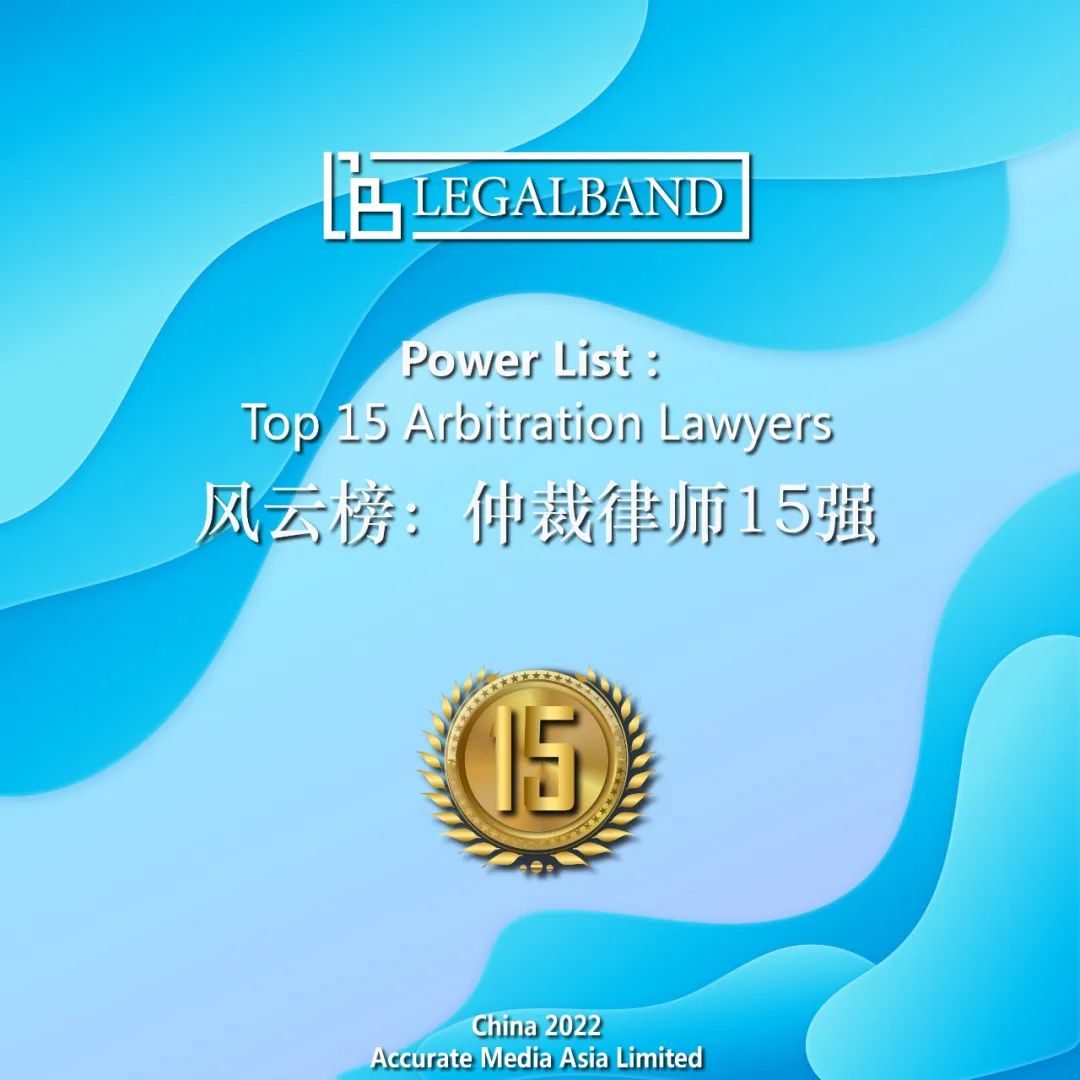 浩天牟菲律师荣膺“2022年度LEGALBAND风云榜:仲裁律师15强”榜单