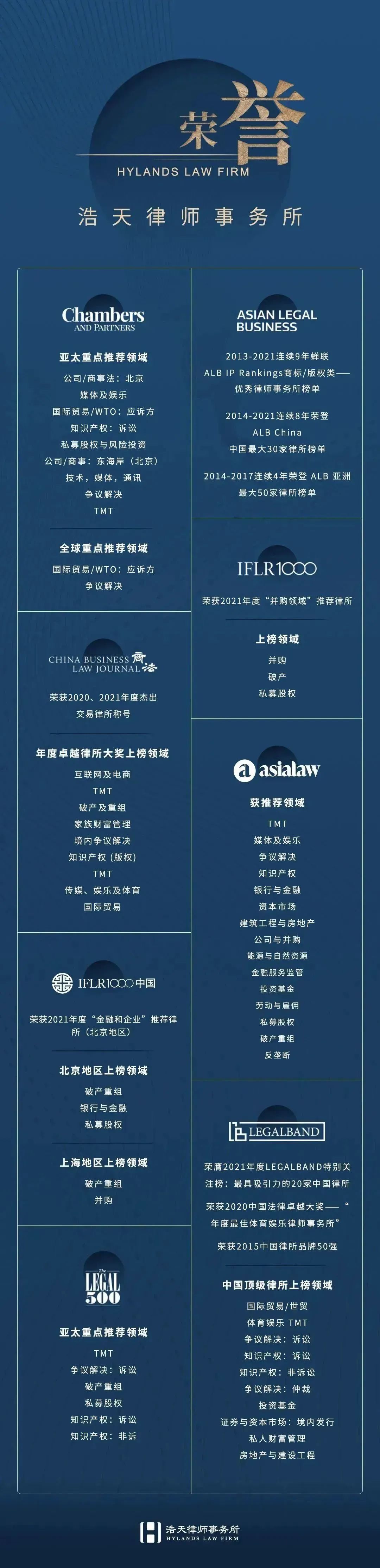2022年12月27日,知名法律评级机构LEGALBAND公布了“2022年度LEGALBAND中国律师特别推荐榜15强:商业犯罪与刑事合规”榜单,北京浩天律师事务所合伙人田劼律师凭借卓越的客户口碑及市场表现荣誉登榜。