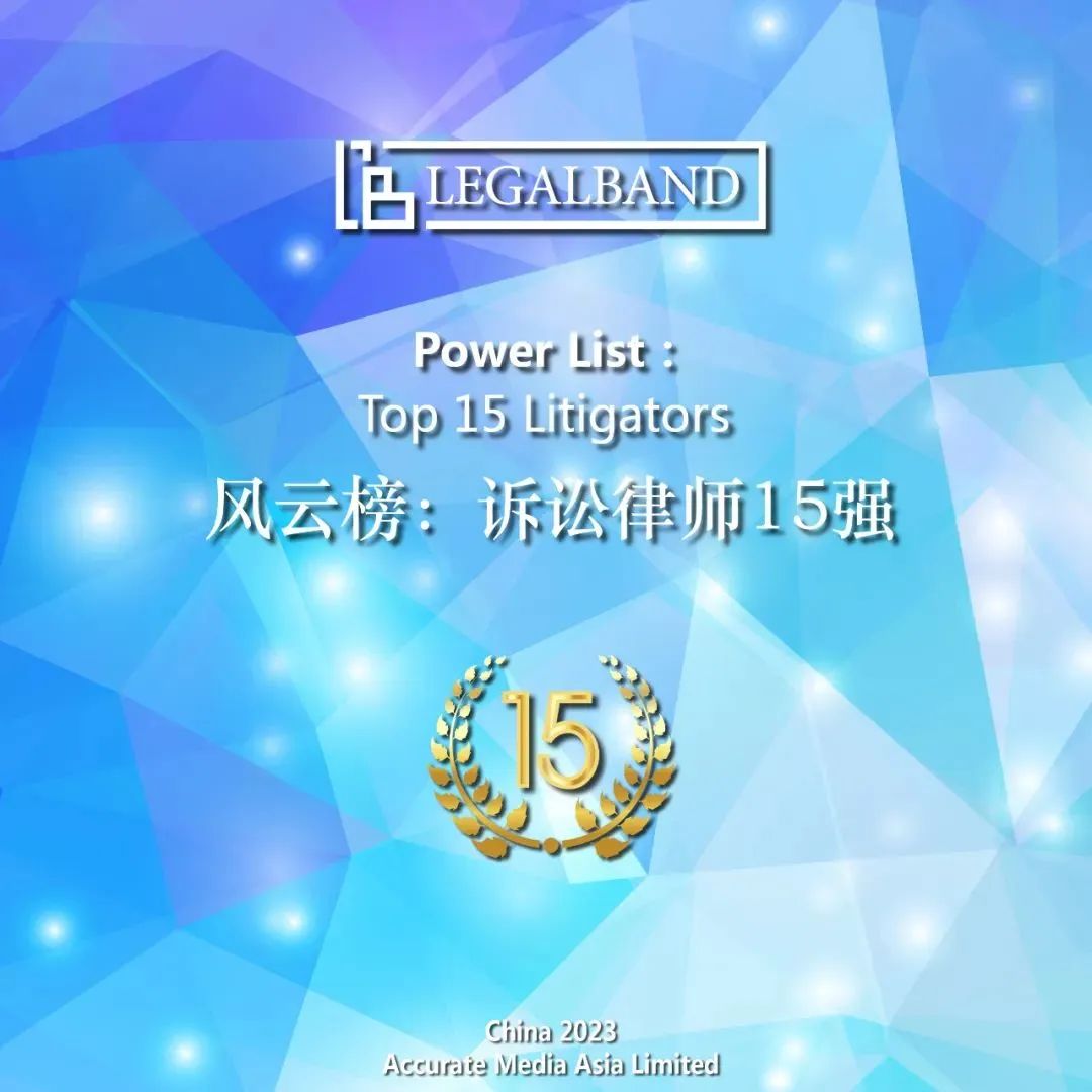 LEGALBAND是国际媒体公司Accurate Media旗下的专业法律评级机构,总部位于香港,在中国大陆拥有驻地调研团队。本次评选,LEGALBAND重点参考了各大律所的推荐材料、律师自荐材料以及客户反馈信息等,同时结合其中国区驻地调研团队对中国诉讼领域的长期关注与洞察,最终选出15位中国大陆地区实力强劲的“诉讼律师”。