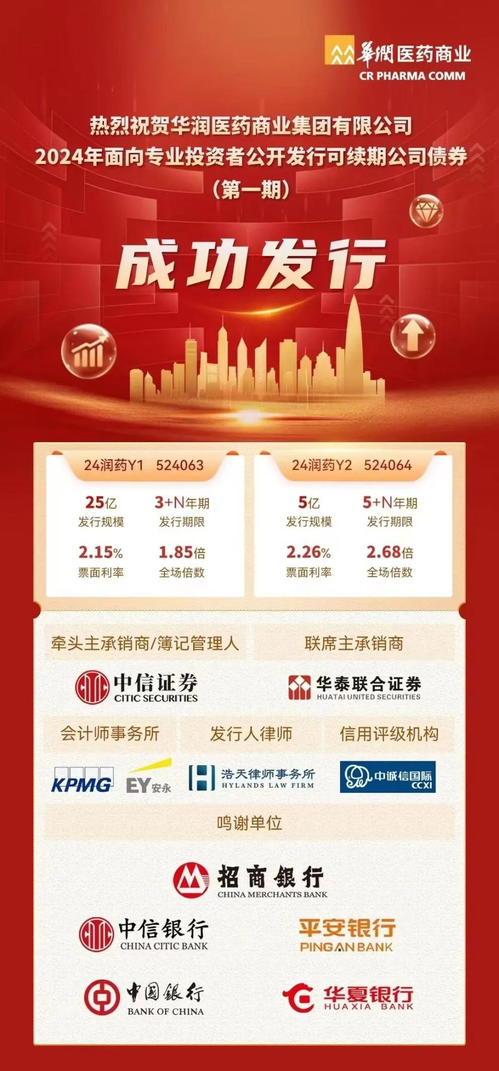 浩天助力华润医药商业集团有限公司公开发行总额不超过200亿元公司债券注册核准及2024年首期30亿元发行成功