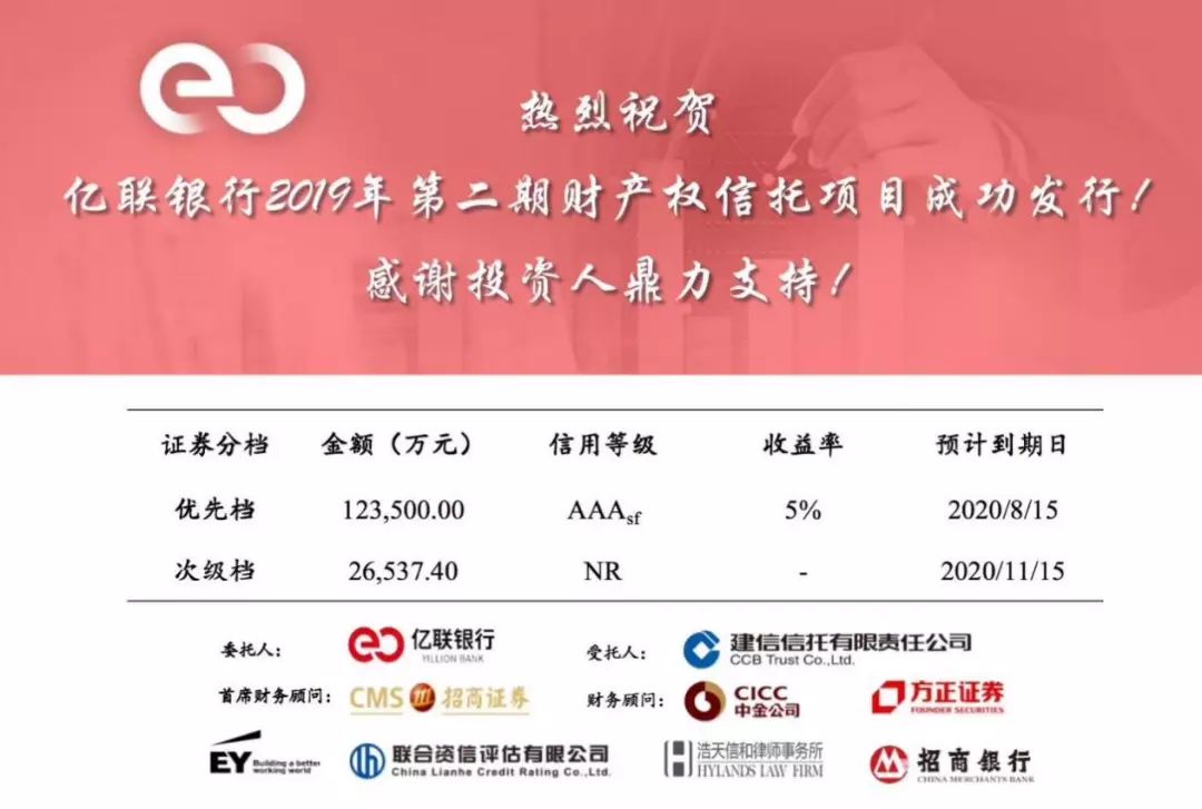 浩天信和助力亿联银行2019年第二期财产权信托成功发行