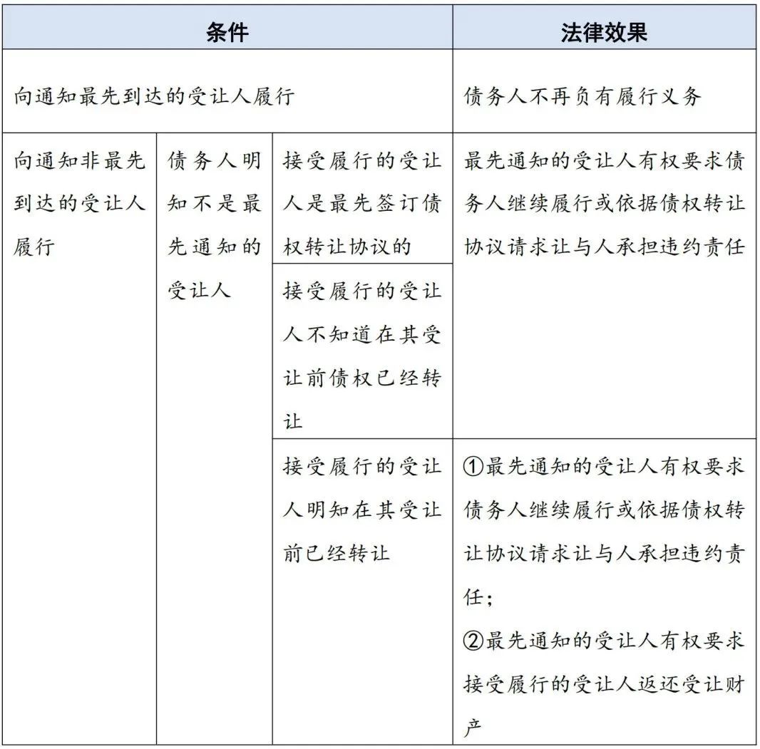 十、多重债权转让债情况下,明确了“通知”的法律效果,债务人向最先“通知”的受让人履行债务,最有利于维护自身权益。