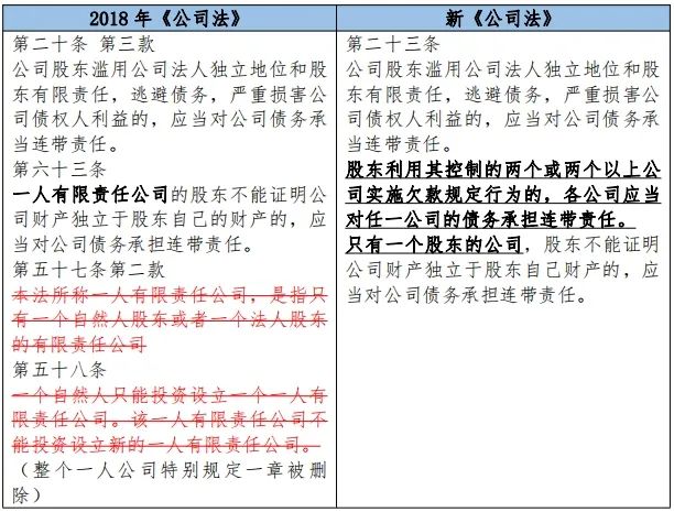 对于本次新《公司法》的修订,正式新增横向法人人格否认制度,体现于第二十三条第二款,为横向法人人格否认制度提供了明确的法源。具体条文对比如下: