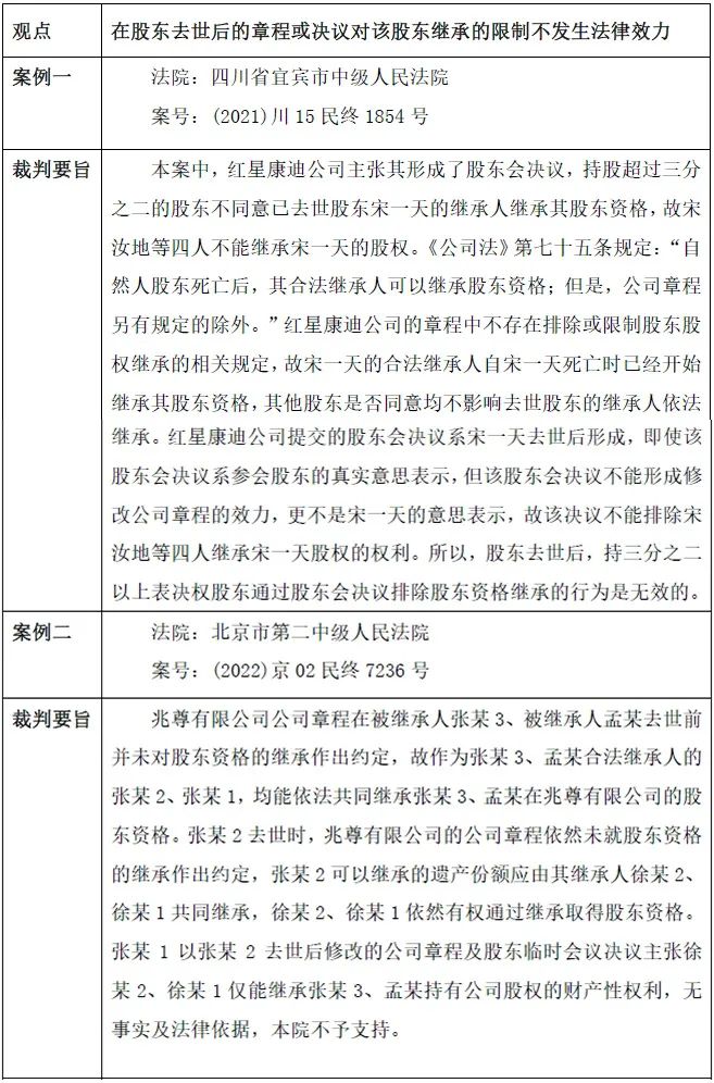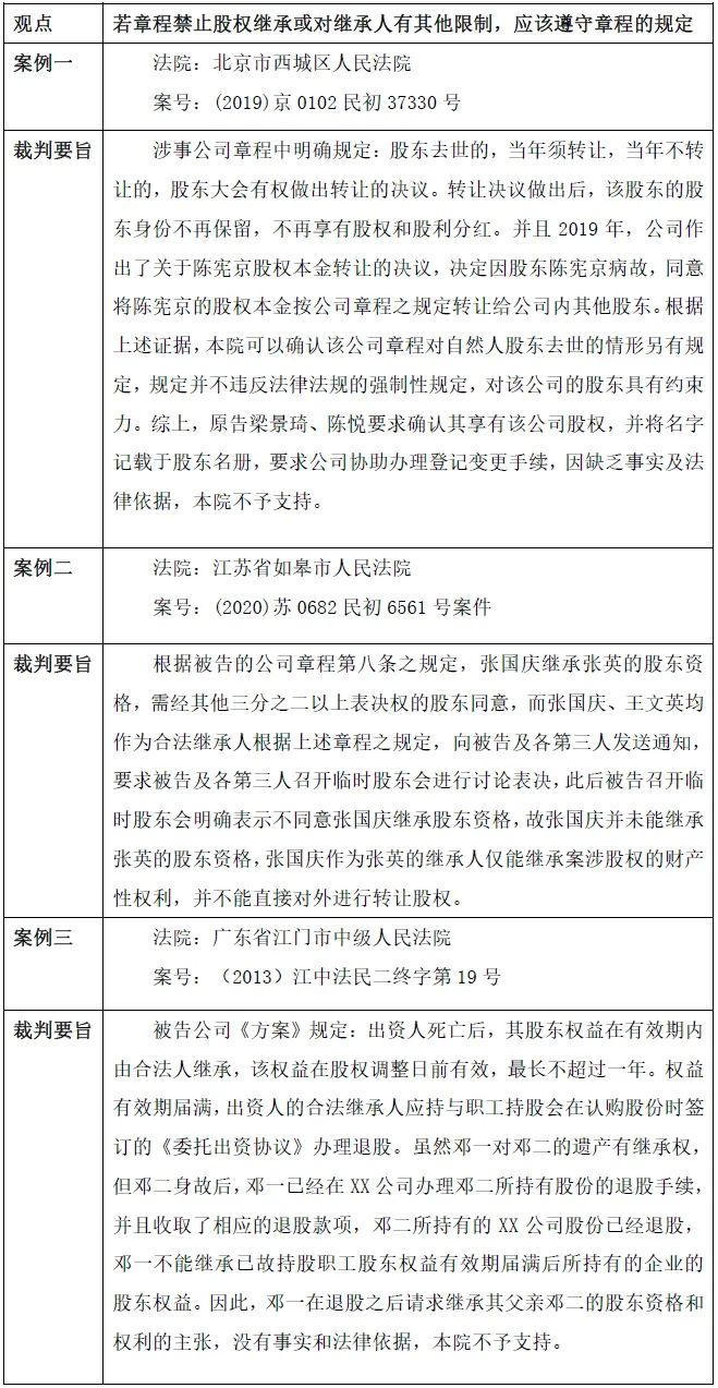 三、股东去世后的公司章程中有对股权继承的限制性规定
