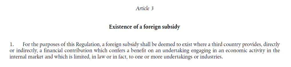 此外,根据《外国补贴条例》第3.1款,贷款符合“外国补贴”的四项要素(即(1)存在财务支持;(2)该财务支持由第三国提供;(3)赋予了企业利益;(4)存在特定性),并被纳入第3.2款规定的“外国补贴”的范畴之内。