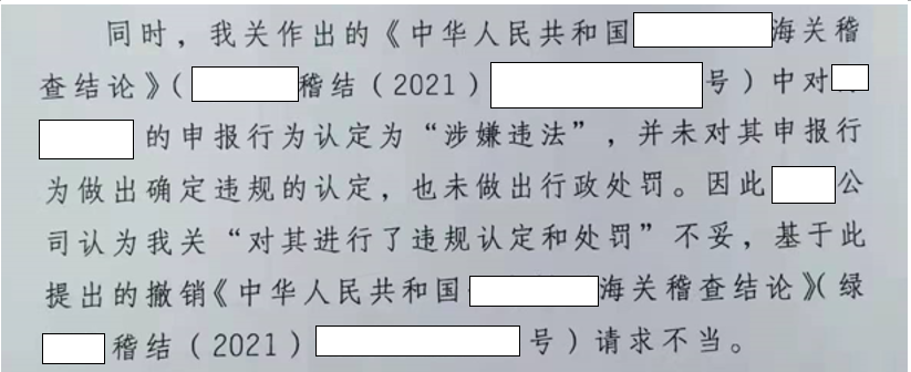 但企业在复议申请中对事实的陈述为,海关“……并据此对我公司进行违规认定和行政处罚”是有问题的,且主要笔墨围绕其申报行为不构成违法也属于抓错了重点。原因如第1点的分析,在第一次稽查结论中,海关仅对归类错误作了认定,并没有认定企业违法而是认为涉嫌违法。复议只能针对海关已经做出的、确定的具体行政行为提出,不能对未发生或或然发生的事项提起。在被申请人的复议答复书中,也表达了同样的观点: