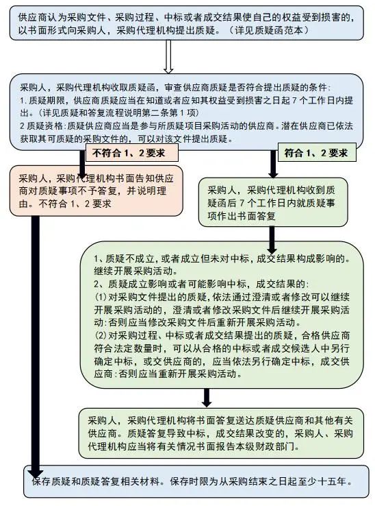 当参与项目采购活动的供应商认为采购文件、采购过程、中标或者成交结果使自己的权益受到损害的,可以在知道或者应知其权益受到损害之日起7个工作日内,以书面形式向采购人、采购代理机构提出质疑。如对其答复不满意或者采购人、采购代理机构未在规定时间内作出答复的,答复期满后15个工作日内向采购人、采购代理机构所属预算级次财政部门提出书面投诉。 供应商投诉的事项不得超出已质疑事项的范围,但基于质疑答复内容提出的投诉事项除外。