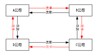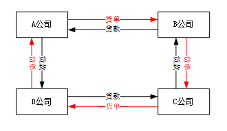 在典型的循环贸易法律关系中,其中A、B、C、D四公司间分别订立货物买卖合同,履行方式为一方支付货款、一方交付货权凭证。货权凭证最初由A公司提供,并最终流向A公司,在整个交易过程中,A公司并不需要实际交付货物,而仅流转货权凭证。随着中间环节的增加,或者货权凭证最终流向合同的关联企业而非直接流向A公司等因素的出现,循环贸易的交易结构可以变得更加复杂。