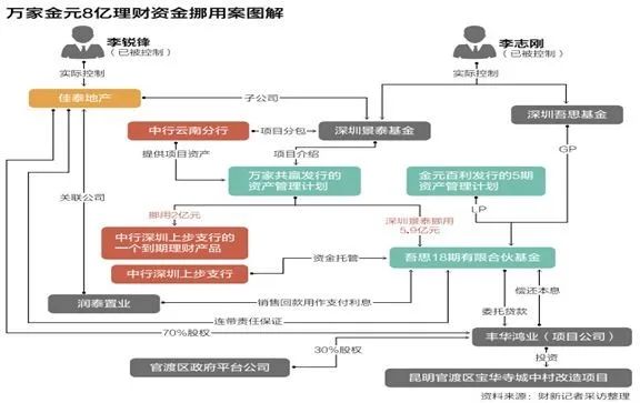比如,某些私募基金公司并无基金管理人资质、或虽有资质但并未设立符合要求的基金,从而打着募集私募基金的幌子实施募集行为并最终造成损失。从经济纠纷方面,其违反监管规定存在过错,投资人可以主张索赔;但如果该行为人将主要募集资金并非投入底层项目,而是用于偿债、挥霍等其他目的,则就可能因存在“非法占有”目的而被认定为构成诈骗犯罪。例如在上海市高级人民法院审理的李志刚、李锐锋合同诈骗罪一案(案号:(2016)沪刑终42号)中,吾思基金实际控制人李志刚伙同丰华鸿业的实际控制人李锐锋在明知李锐锋实际控制的多家公司(包括丰华鸿业在内)已经资不抵债的情形下,仍以项目开发为借口大量募集资金。其中包括以投资“宝华寺城中村改造项目”为由,发起设立吾思十八期,骗取万家共赢的资金投入李志刚为此成立的景泰基金。景泰基金收到款项后仅将少量资金投入宝华寺项目,其余大量用于支付管理费、财顾费及偿还其他债务(具体情形可参考下图)。基于上述查明的事实,法院认为,李志刚、李锐锋为偿还到期债务,以与银行签订的接力宝合作协议为诱饵,诱骗被害单位万家共赢与其签订合伙协议,并以此骗取被害单位投资款,后李志刚、李锐锋又将骗得的资金用于归还前债。李志刚、李锐锋主观上具有非法占有的目的,客观上实施了诈骗行为,两人的行为符合合同诈骗罪的构成要件。